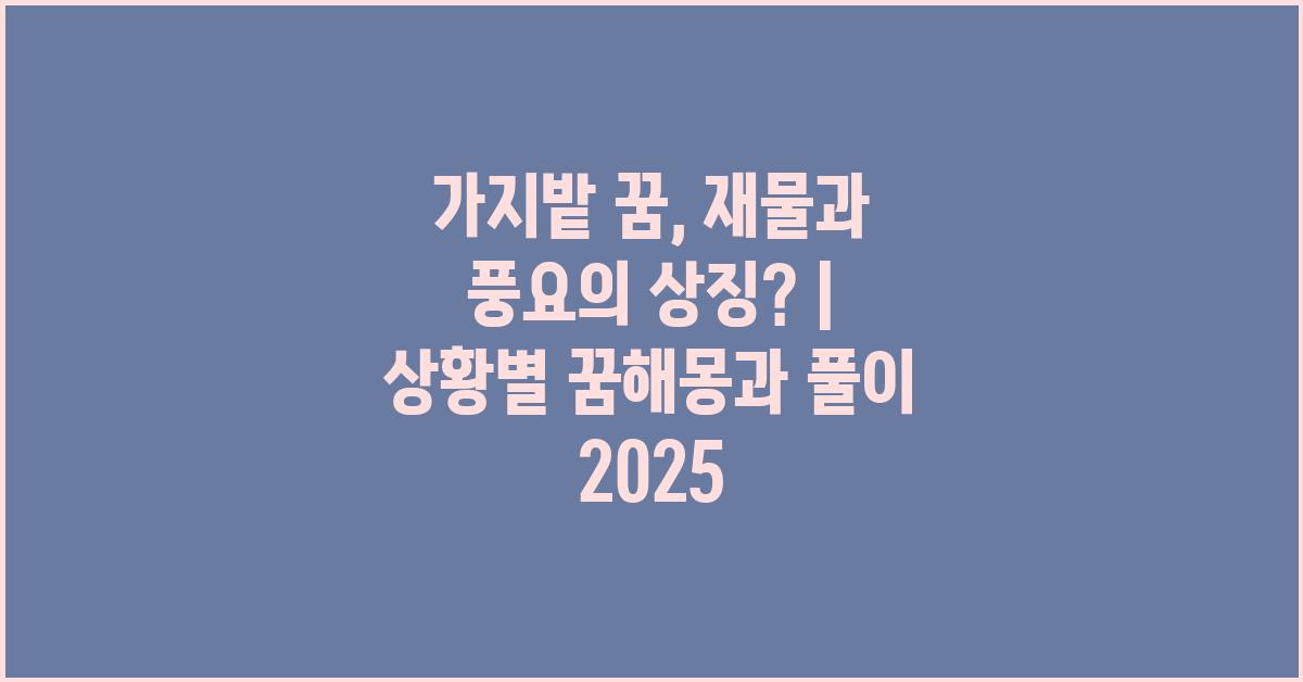 가지밭 꿈, 재물과 풍요의 상징? | 꿈해몽 꿈풀이 꿈해석 꿈의미에서는 단순한 꿈의 의미를 넘어, 우리의 삶의 여정이 반영됩니다. 이 꿈들이 궁극적으로 어떤 메시지를 전하려고 하는지 살펴보는 것이 중요합니다.
