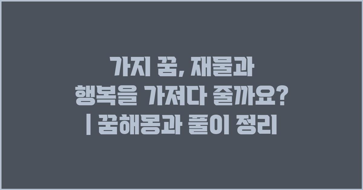 꿈은 우리가 일상에서 겪는 경험들에 대한 반영이기도 하고, 어떤 미래의 가능성을 암시하기도 합니다. 특히 꿈의 상징적인 의미를 이해하면 우리의 삶에 긍정적인 영향을 줄 수도 있습니다. 이러한 맥락에서 '가지 꿈, 재물과 행복을 가져다 줄까요? | 꿈해몽 꿈풀이 꿈해석 꿈의미'라는 주제는 매우 흥미롭고 많은 사람들이 관심을 가질만한 주제입니다.