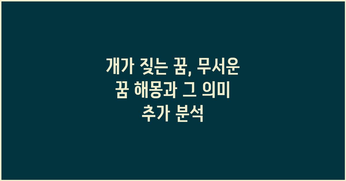 이제 여러분은 개가 짖는 꿈, 무서운 꿈 해몽의 의미를 더 잘 이해하고 계실 겁니다. 꿈에서 나타나는 상징을 통해 우리는 자신의 내면을 바라보는 계기를 가질 수 있습니다. 각자의 꿈은 다르고, 그 속에 숨겨진 의미를 이해하는 것은 중요한 자기 발견의 과정입니다.