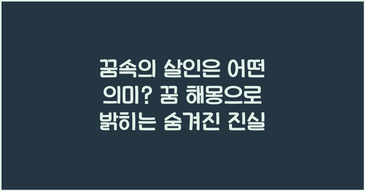 꿈속의 살인은 내면에 억압된 감정이나 갈등의 상징으로 해석됩니다. 이는 자기 성찰과 변화의 필요성을 느끼게 해주기도 합니다.
