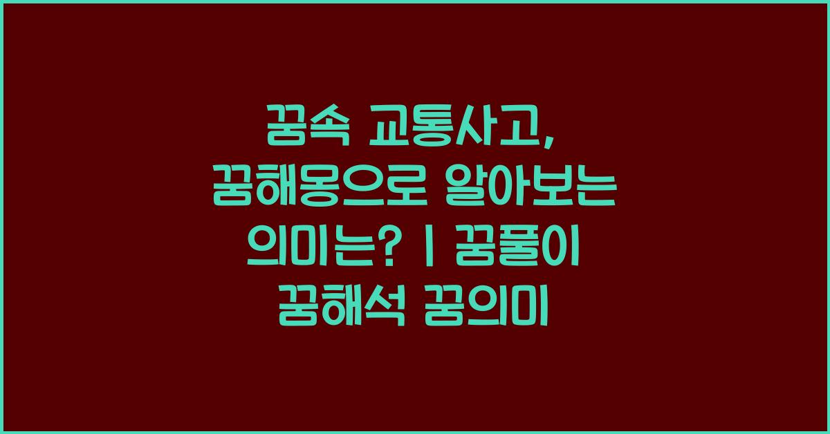 꿈속 교통사고, 어떤 의미일까요? | 꿈해몽 꿈풀이 꿈해석 꿈의미! 많은 사람들이 꿈 가운데서 가장 불안감을 느끼는 것 중 하나가 바로 교통사고입니다. 이러한 꿈을 꾸고 나면 이튿날 아침에 기분이 묘해지기도 하죠. 꿈속에서의 교통사고는 다양한 해석을 담고 있으며, 각자에게 다른 의미가 있을 수 있습니다. 심리학적으로 교통사고 꿈은 내부의 갈등이나 스트레스, 혹은 변화에 대한 두려움을 나타내는 경우가 많죠. 그렇다면 이러한 꿈을 좀 더 깊이 있게 분석해 보도록 할까요?