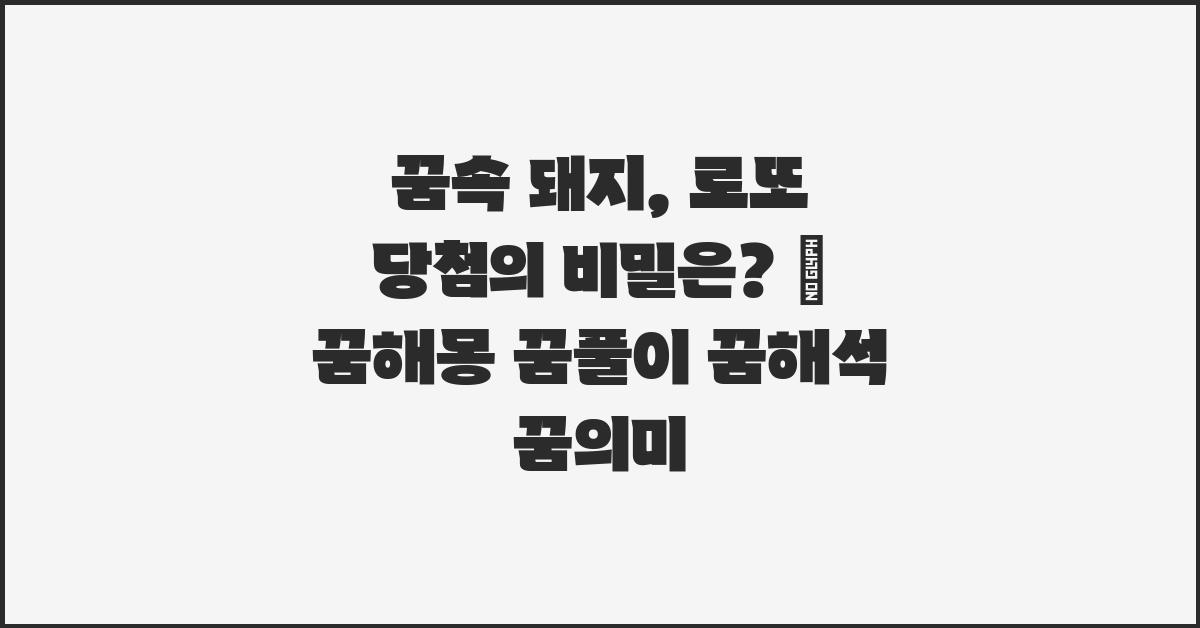 꿈속에서 돼지를 보는 것은 여러 가지 의미를 지닙니다. 일반적으로 돼지는 지혜와 재산을 상징하며, 꿈에서 돼지를 만날 때는 행운이 다가오는 신호로 해석되기도 합니다. 이를 통해 많은 이들이 로또 당첨의 힌트를 얻으세요 | 꿈해몽 꿈풀이 꿈해석 꿈의미를 찾곤 합니다. 돼지는 복과 프로스페리티를 나타내는 상징이어서, 꿈속에서 돼지를 보는 것은 긍정적인 변화가 일어날 가능성을 의미하기도 합니다.