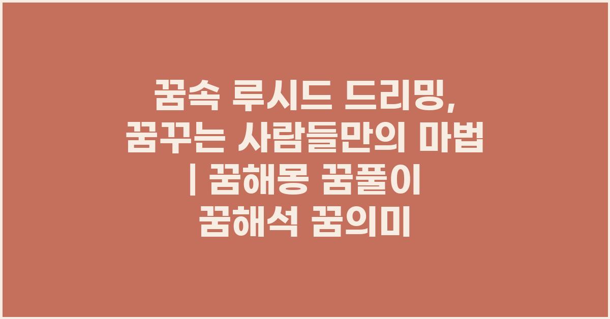 꿈속 루시드 드리밍, 깨어나 꿈을 조종하라 | 꿈해몽 꿈풀이 꿈해석 꿈의미는 우리에게 많은 영감을 주며, 자기 인식을 높이는 귀중한 기회가 됩니다. 이 과정을 통해 꿈은 단순한 수면 중의 환상이 아니라, 삶의 큰 변화를 가져오는 중요한 요소가 될 수 있습니다.