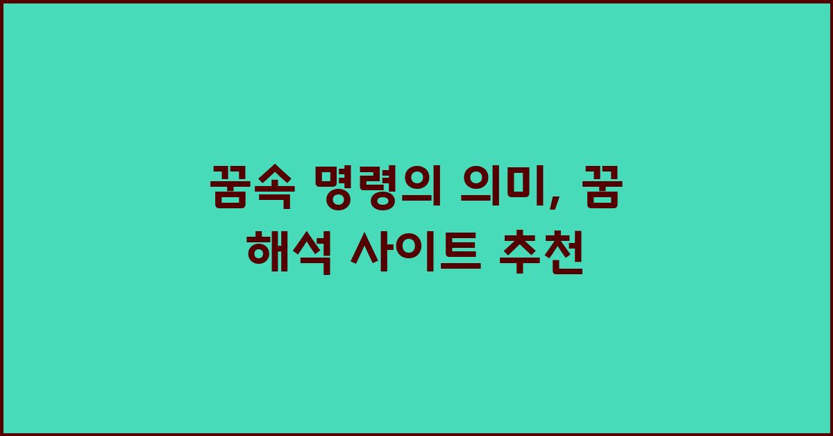 꿈속에서 우리가 받은 명령은 매우 상징적이며, 종종 우리의 잠재의식을 반영합니다. 이런 꿈은 우리에게 어떤 메시지를 전달하고자 하며, 꿈의 내용을 해석하는 것은 그 메시지를 이해하는 중요한 과정입니다. 예를 들어, 누군가가 꿈 속에서 나에게 뭔가를 시킨다면, 그것은 실제 삶에서 내가 무언가를 놓치고 있다는 경고일 수도 있습니다. 꿈 해몽은 이러한 심리적 분석에 도움을 주는 중요한 도구입니다.