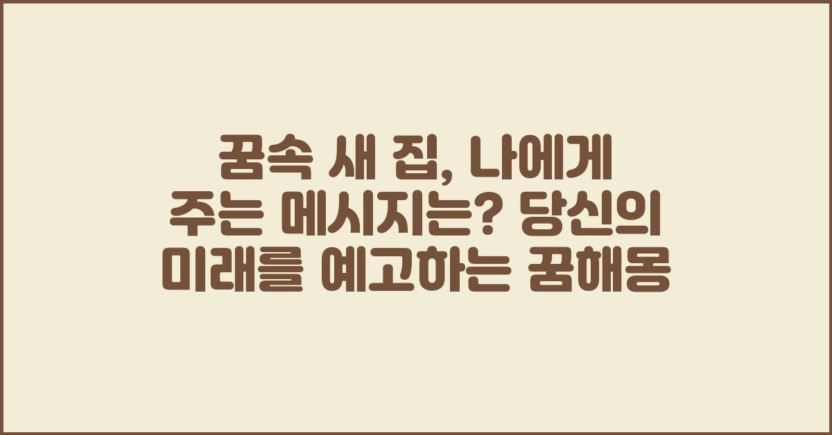 꿈속에서 새 집을 꾸는 것은 미래에 대한 긍정적인 갈망을 나타내는 경우가 많습니다. 여전히 길을 찾아가는 순간에, 우리는 꿈속 새 집, 나에게 주는 메시지는? | 꿈해몽 꿈풀이 꿈해석 꿈의미를 통해 언젠가 이뤄질 좋은 일들을 예감할 수 있습니다. 이 새로운 집은 개인의 성장, 변화, 그리고 삶의 새로운 출발을 상징합니다. 집은 우리 삶의 중심인 만큼, 꿈에 나타난 집은 우리의 내면 상태와 직결될 수 있습니다.
