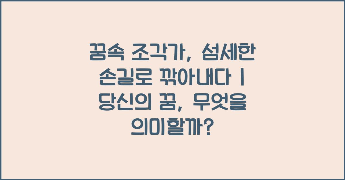 꿈속 조각가, 섬세한 손길로 깎아내다 | 꿈해몽 꿈풀이 꿈해석 꿈의미의 의미는 뚜렷하게 드러납니다. 꿈은 단순한 수면 중의 환상이 아니라, 내 마음의 소리를 반영합니다. 꿈의 해석을 통해 우리는 자신을 더 깊이 이해하고, 감정적인 문제를 해결할 수 있는 기회를 찾을 수 있습니다. 여러분의 꿈을 통해 더 나은 내일을 구상해보세요.