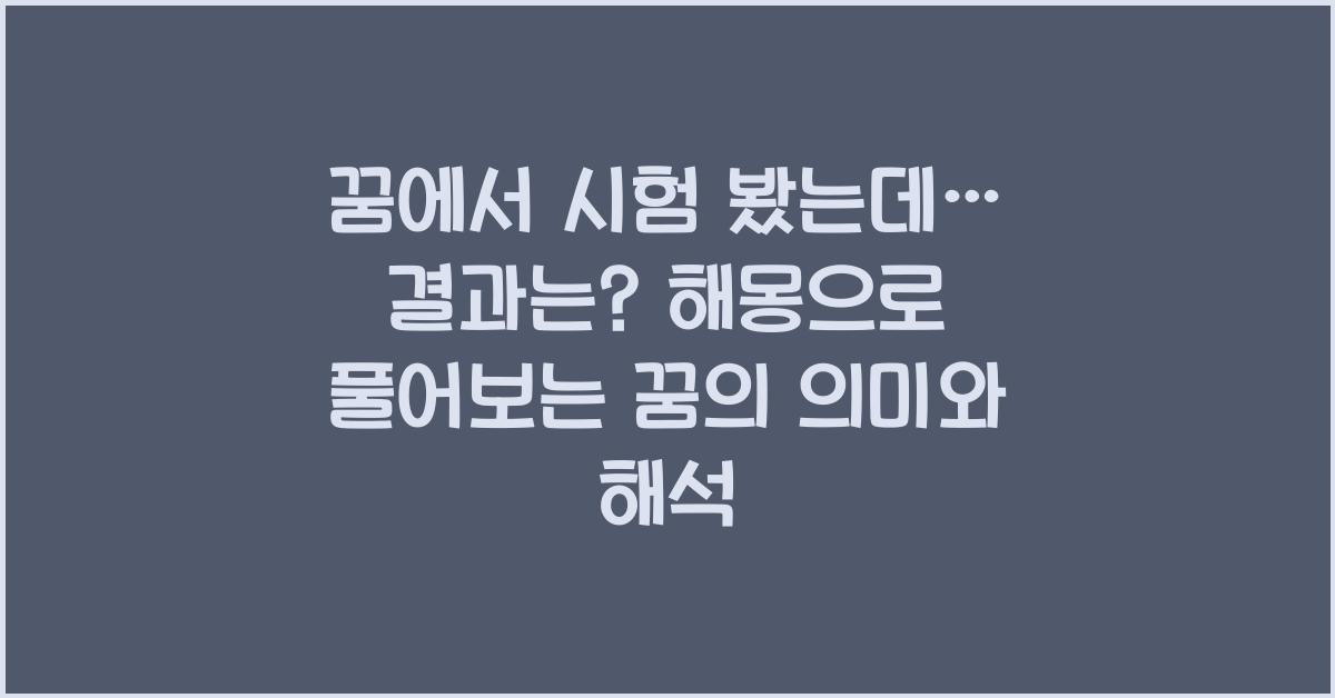 꿈에서 시험을 보고 그 결과에 따라 해몽이 달라질 수 있습니다. 예를 들어, 실패한 내용을 꿈꿨다면 자신이 느끼는 불안이나 두려움이 강하게 반영된 경우입니다. 이 꿈은 누군가에게는 반복적으로 느끼는 스트레스 혹은 삶의 압박을 나타낼 수 있습니다. 디테일한 상황을 분석함으로써 문제를 해결하고 극복할 수 있는 기회를 찾아볼 수 있습니다.