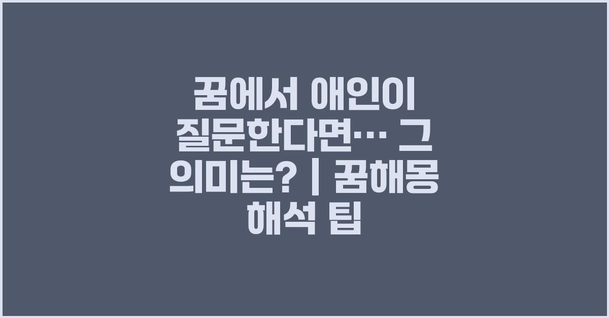 내 경험상, 많은 사람들은 꿈 속에서의 애인과의 대화가 실제 관계에 영향을 미친다고 느끼곤 합니다. 생생한 꿈을 꿨던 밤, 다음 날 애인과의 대화에 조금 더 솔직해지고 싶었던 적이 있습니다. 여러분도 이런 경험 있으시죠? 꿈에서 애인이 묻는 질문은 무의식적인 소망이나 두려움을 드러내는 때가 많아, 이를 통해 자신의 심리적 상태를 파악할 수 있습니다.