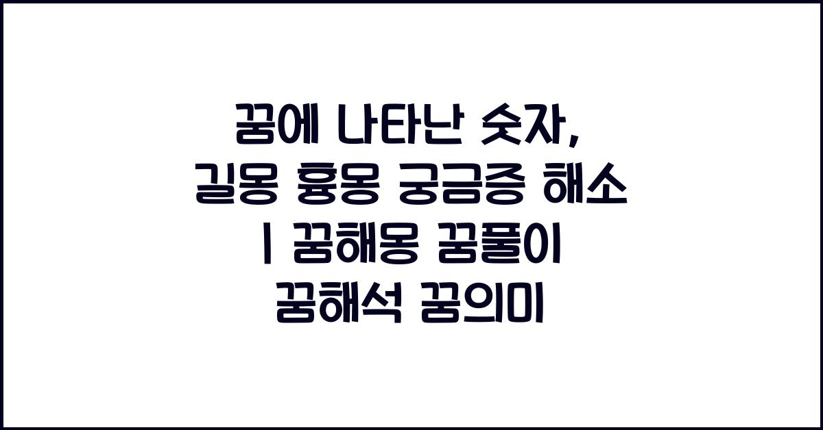 꿈에서 나타나는 숫자의 의미와 그 숫자가 길몽인지 흉몽인지에 대한 궁금증을 해소하는 유익한 정보를 제공합니다. 꿈해몽과 꿈풀이를 통해 더 깊은 이해를 도와드립니다.