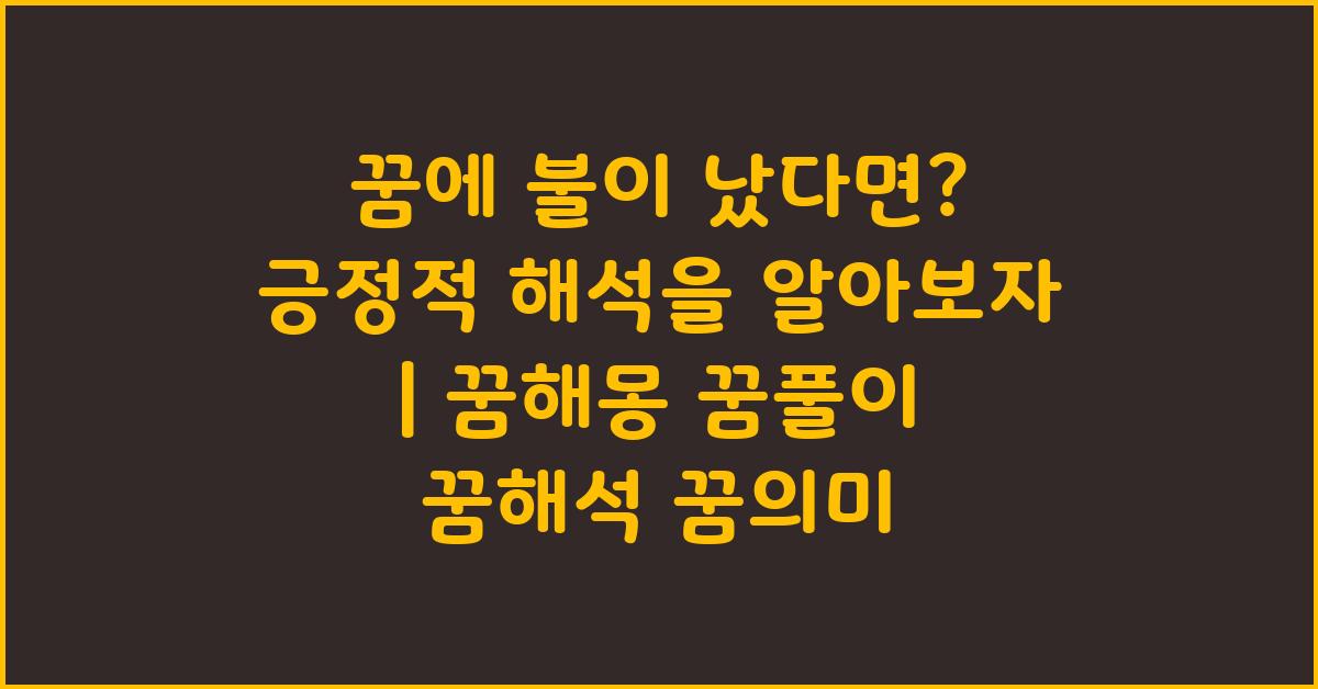 꿈에 불이 났다면 긍정적 해석은? | 꿈해몽 꿈풀이 꿈해석 꿈의미를 통해 여러분은 꿈 속의 불이 가져다주는 변화를 느끼고 이해할 수 있게 되었을 것입니다. 소중한 삶의 여정에서 이러한 변화를 두려워하지 말고, 긍정적으로 받아들이는 지혜를 기르세요. 새로운 가능성은 언제나 상상하지 못한 곳에서 찾아올 수 있습니다.