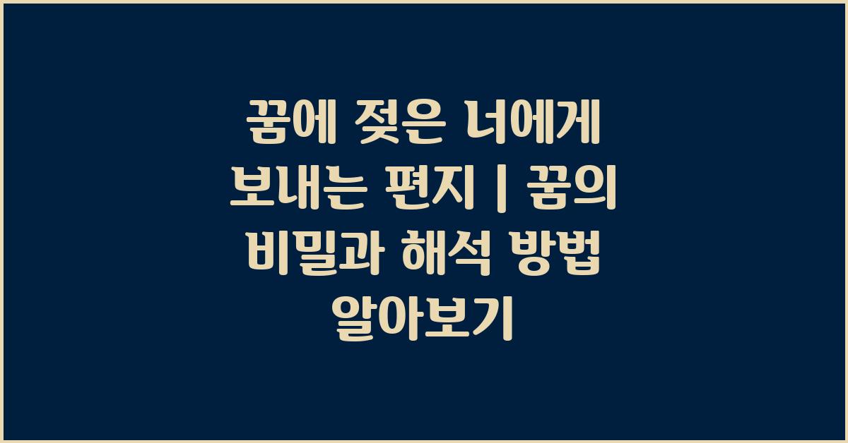 꿈은 삶의 지혜가 담긴 보물입니다. 꿈에 젖은 너에게 보내는 편지 | 꿈해몽 꿈풀이 꿈해석 꿈의미를 어떤 방식으로 실천할지는 여러분이 선택하는 것입니다. 스스로의 꿈을 해석하고, 이를 바탕으로 삶의 방향을 찾아 나가는 것은 분명 의미 있는 여정이 될 것입니다. 꿈은 단지 수면 중에 일어나는 일이 아니라, 때로는 중요한 메시지를 보내는 기회를 제공합니다.