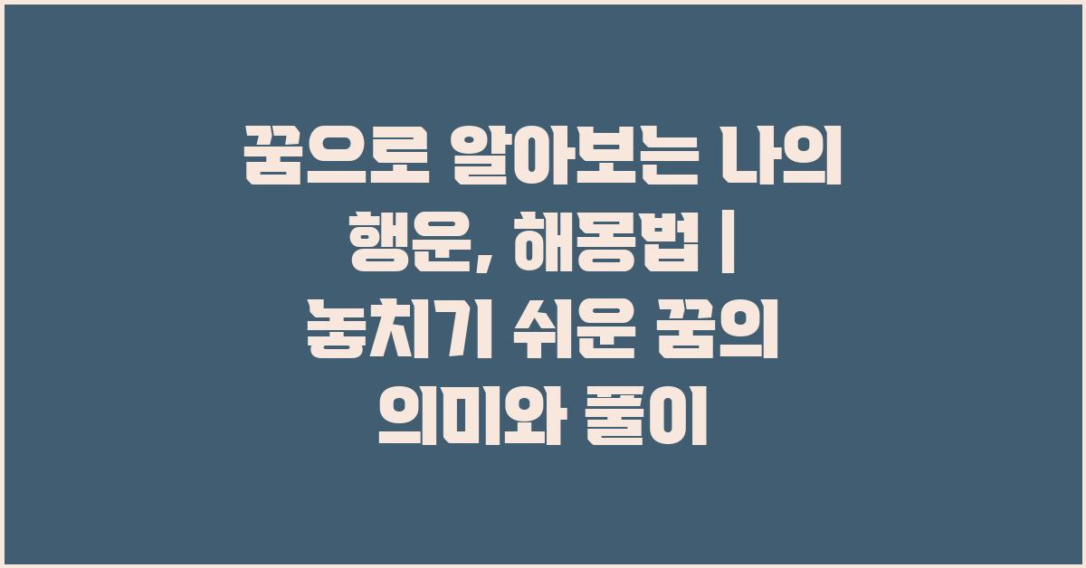 꿈은 우리 무의식의 창문처럼 여겨집니다. 어떤 꿈들은 신비롭고 심오하며, 또 어떤 것은 단순히 일상생활의 재탕일 뿐이죠. 여러분도 저처럼 꿈을 꾼 후 아침에 일어날 때, 그 꿈의 의미가 뭘까 고민해본 적 있으시죠? 꿈으로 알아보는 나의 행운, 해몽법에 대해 탐구해보겠습니다.