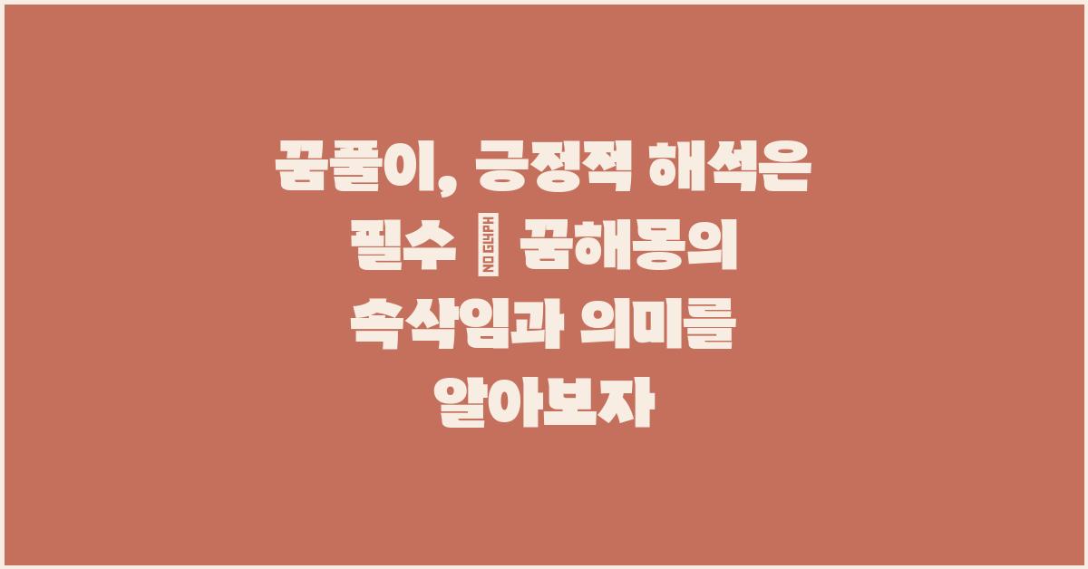 꿈은 우리의 무의식이 표현되는 독특한 매체입니다. 매일 밤 우리는 다양한 경험을 꿈속에서 하게 되는데, 그 내용은 각기 다릅니다. 꿈의 해석은 오래전부터 많은 사람들에게 흥미로운 주제로 다가왔습니다. 개인적으로도 꿈풀이, 긍정적 해석은 필수!라는 생각이 듭니다. 꿈속의 이미지는 불행한 사건이나 긍정적인 사건 모두를 포함할 수 있지만, 중요한 것은 이를 긍정적으로 해석하는 것입니다.