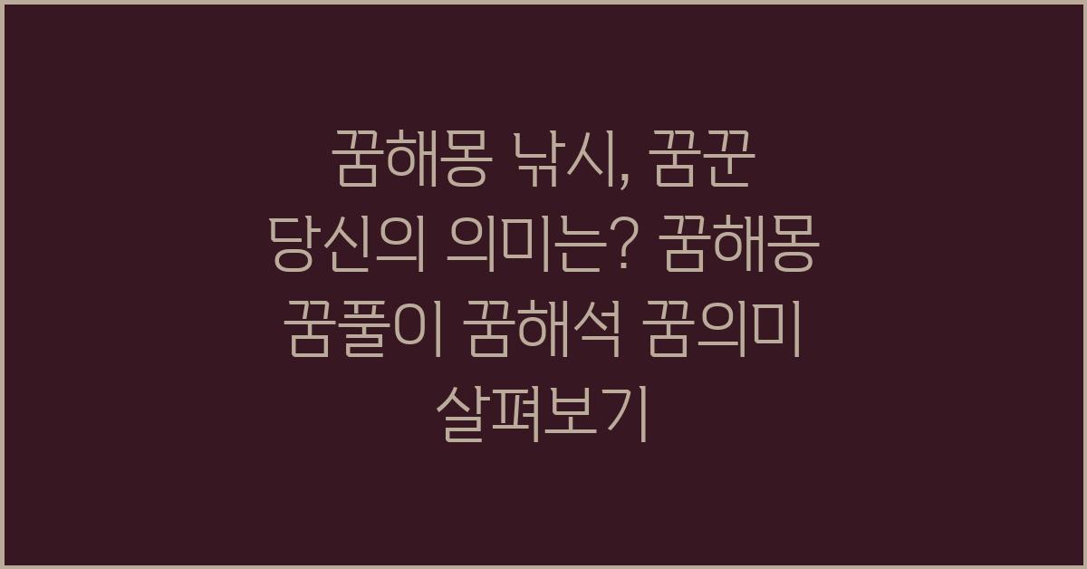 마지막으로, 꿈의 해석은 각자 다르다는 점이 중요합니다. 자신만의 느낌으로 꿈을 해석하고, 그 속에서 중요한 교훈을 찾는 것이 중요하죠. 꿈의 의미는 사람마다 다르게 해석될 수 있으므로, 여러분만의 방식으로 꿈을 이해하고 받아들이세요.