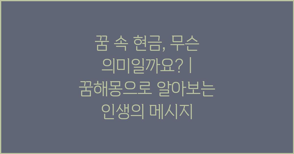 현금 꿈을 꿨을 때, 즉각 확인하세요!