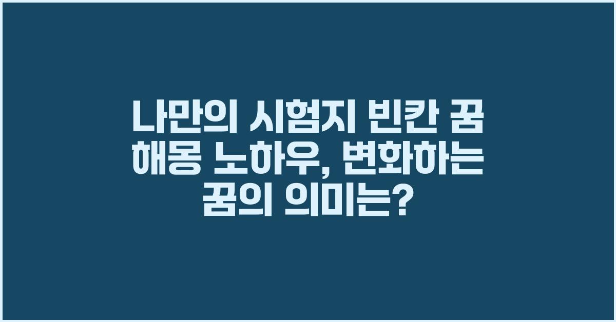 나만의 시험지 빈칸 꿈 해몽 노하우는 특히나 개인적 경험을 많이 담고 있습니다. 여러 사람의 꿈은 각자의 삶의 배경과 상황에 따라 다르게 해석되기 때문에, 꿈을 해석하는 과정에서 자신만의 노하우를 발견하는 것도 중요하지요. 이렇게 꿈을 해석하면서 느끼는 기쁨은 마치 새로운 진리를 발견하는 것과 같습니다.