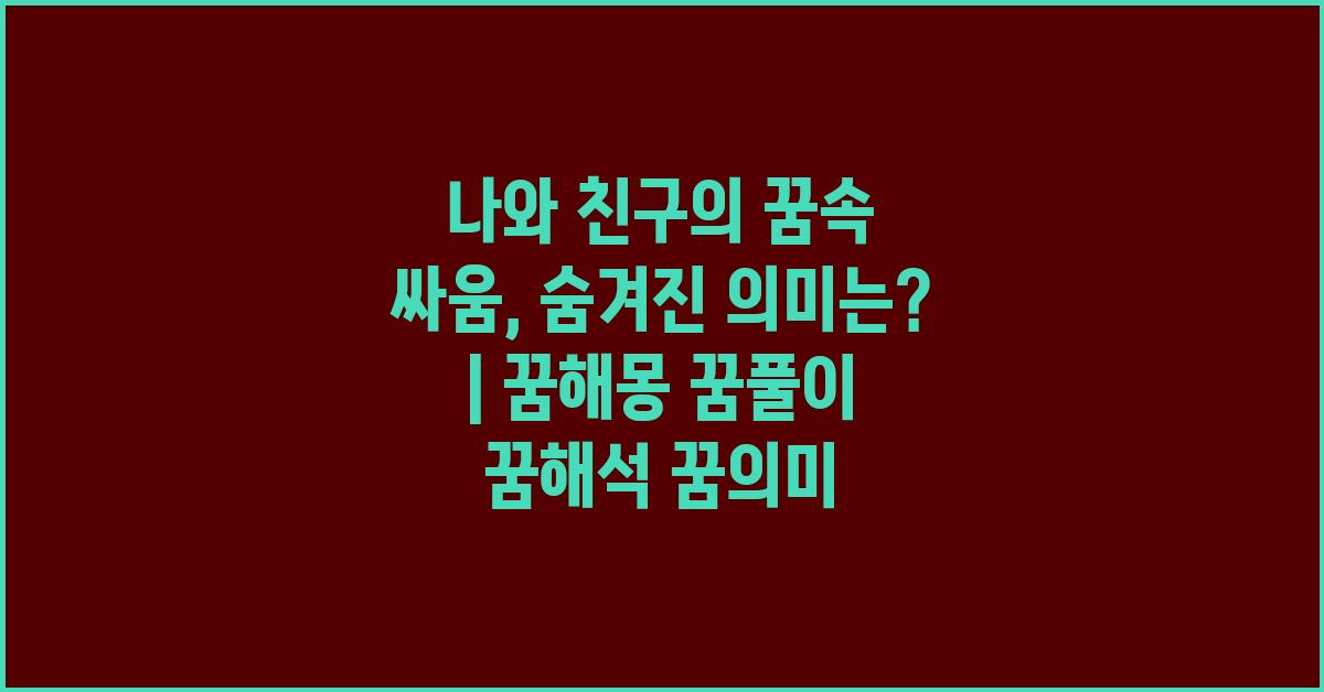 나와 친구의 꿈속 싸움, 진짜 의미는? | 꿈해몽 꿈풀이 꿈해석 꿈의미에 대해서 알아보겠습니다. 꿈에서 친구와의 갈등은 다양한 의미를 가질 수 있는 복합적인 상징입니다. 예를 들어 친구와의 비유적인 싸움은 당신 자신과의 내면의 갈등을 나타낼 수 있습니다. 꿈속에서 친구는 나의 한 부분으로, 그 친구와의 대결은 나 자신의 모습과의 대결이 될 수 있죠.