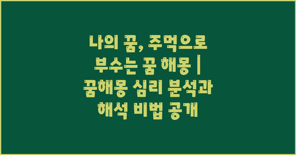 꿈의 해석은 단순한 오락이 아닌, 우리 삶의 중요한 부분을 이해하는 데 도움이 됩니다. 나의 꿈, 주먹으로 부수는 꿈 해몽 | 꿈해몽 꿈풀이 꿈해석 꿈의미를 통해 우리는 자신을 더 깊이 이해하고, 일을 대처하는 다양한 방안을 찾아갈 수 있습니다.