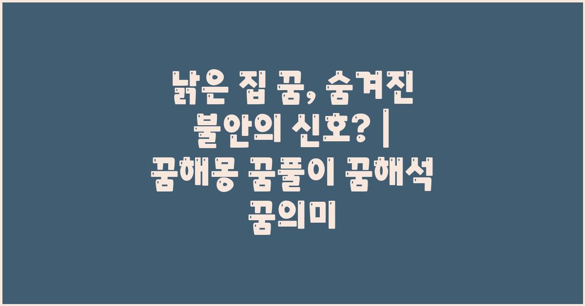 낡은 집 꿈, 불안의 징조일까요? | 꿈해몽 꿈풀 해석 꿈의미를 통해 각자의 꿈이 주는 감정을 이해하고, 긍정적인 방향으로 나아가는 계기가 되길 바랍니다. 꿈은 여러분의 내면에서 해답을 찾는 첫걸음이 될 수 있습니다.