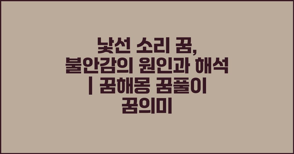꿈은 우리 마음속의 깊은 감정을 반영하는 창입니다. 낯선 소리 꿈은 그 자체로도 무언가를 암시하는 경우가 많습니다. 왜냐하면 꿈에서 접하는 소리는 일상생활에서는 경험할 수 없는 것들이기 때문입니다. 이러한 꿈을 꾼 사람들은 종종 자신이 느끼는 불안감을 해석해 보려고 노력합니다. 그래서 “낯선 소리 꿈, 불안감의 원인은?”이라는 질문은 많은 이들에게 공감되는 주제입니다. 꿈에서 들려오는 소리가 무엇을 의미하는지를 이해하면, 현재의 불안감을 해소하는 데 도움이 될 수 있습니다.