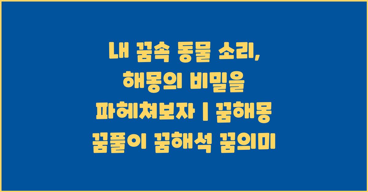 내 꿈속 동물 소리, 지금 바로 해몽해볼까요? | 꿈해몽 꿈풀이 꿈해석 꿈의미 이 질문은 꿈을 해석하는 첫 걸음입니다. 개인적으로는 꿈 해석이 과거의 나를 이해하고 미래를 준비할 수 있는 중요한 과정이라고 생각합니다. 꿈속 소리의 원인을 찾아 감정을 해소하는 과정도 소중합니다. 여러분의 경험을 주변 사람과 이야기해보세요. 그 속에서 예상치 못한 통찰이나 힌트를 발견할 수 있습니다.