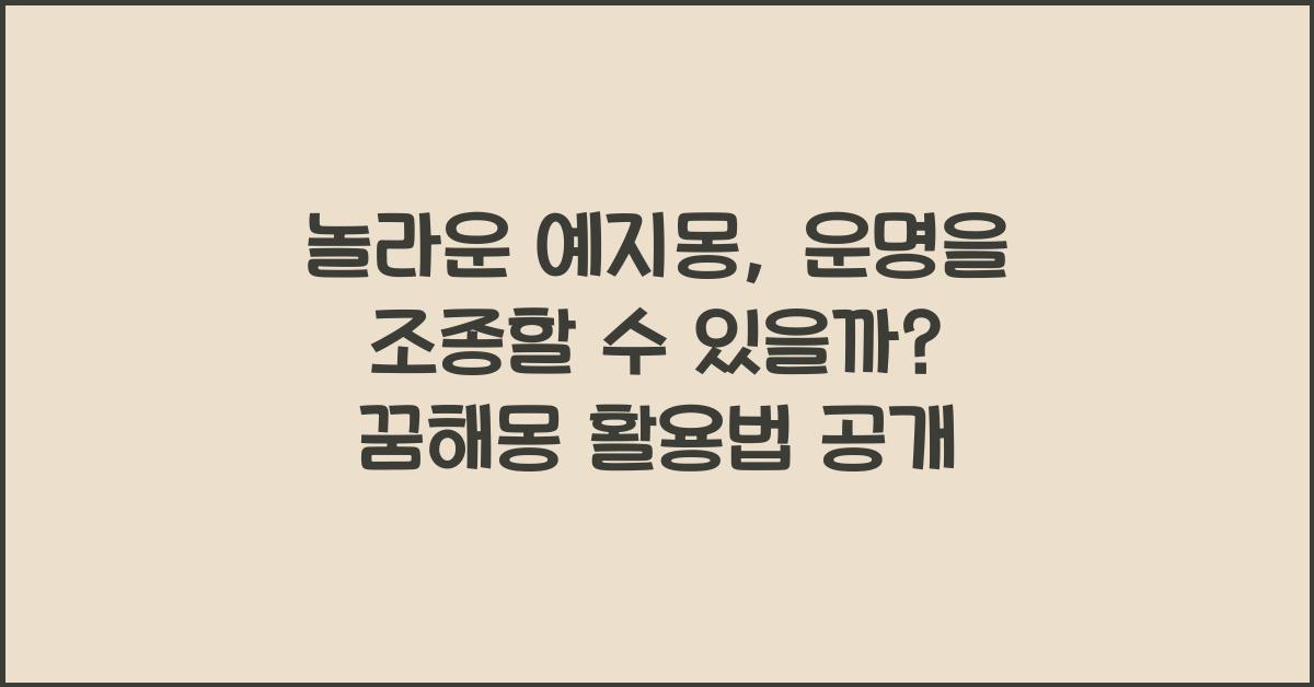 그렇다면, 우리는 예지몽을 통해 운명을 조종할 수 있을까요? 답은 ‘어느 정도는 가능하다!’입니다. 예지몽은 우리가 앞으로 나아갈 방향을 설정하는 데 도움을 줄 수 있습니다. 예를 들어, 불안한 꿈을 꾸었다면, 그 꿈은 실제로 당신이 어떤 고민이나 두려움이 있다는 신호일 수 있습니다. 그런 불안감을 해결하기 위해 무엇을 해야 할지 고민해보는 시간이 필요하죠. 꿈을 반성의 계기로 삼아 당신의 선택을 다시 생각할 수 있습니다.