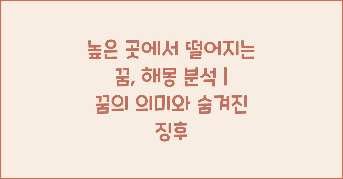 높은 곳에서 떨어지는 꿈은 심리학적으로 불안정함과 연결될 수 있습니다. 이는 자신이 지탱하고 있는 많은 것들이 무너질까 두려워하는 감정을 담고 있습니다. 여러분의 삶이나 주변 상황이 불안정한 상태일 때 이 꿈이 자주 나타 날 수 있습니다. 결국 이는 우리가 느끼는 고통을 담고 있는 상징일지도 모르겠습니다.