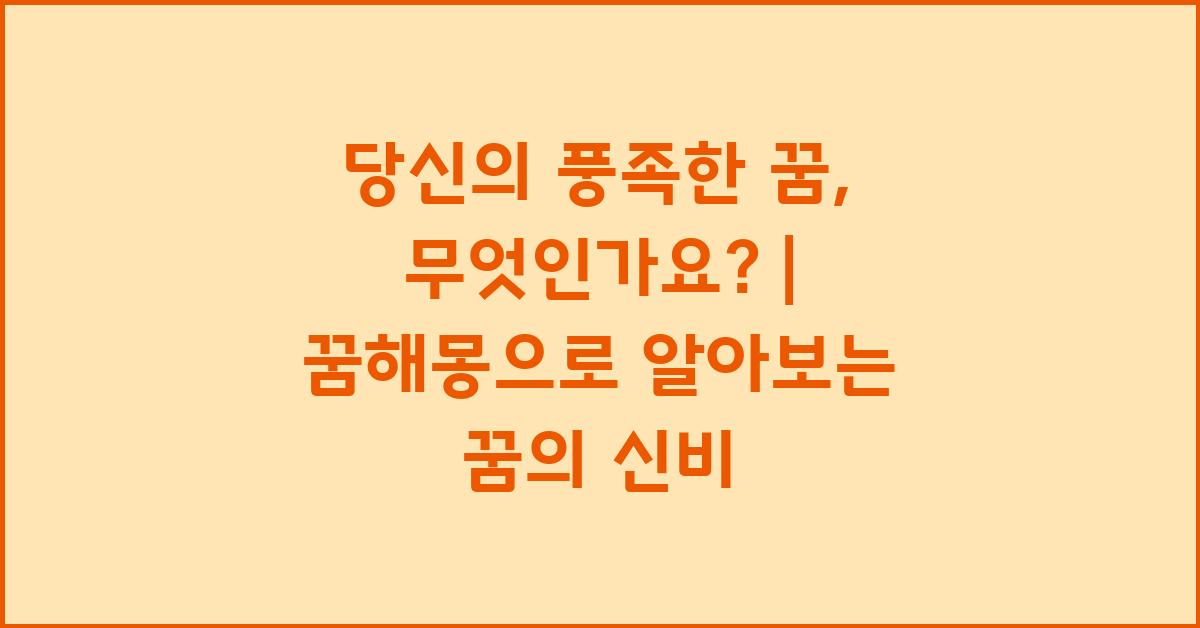 꿈은 우리의 상상력을 자극하며, 어떤 때는 미래를 예고하기도 합니다. 당신의 풍족한 꿈, 무엇인가요? | 꿈해몽 꿈풀이 꿈해석 꿈의미를 통해, 우리는 꿈에 담긴 메시지를 해석해 볼 수 있습니다. 매일 우리는 잠을 자며 다양한 꿈을 꿉니다. 그 꿈들이 우리에게 어떤 의미를 지니는지, 한 번 풀어보는 건 어떨까요?