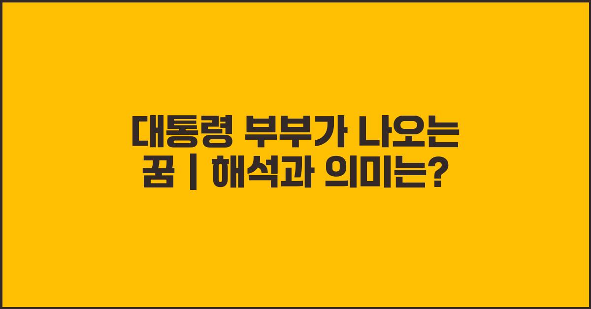 대통령 부부가 나오는 꿈 | 꿈해몽 꿈풀이 꿈해석 꿈의미에 대해 살펴본 결과, 꿈은 단순한 환상이 아니라 나의 내면을 들여다볼 수 있는 기회를 제공합니다. 이 꿈을 통해 권력, 자아, 그리고 관계에 대한 생각을 정리해보세요. 여러분의 꿈이 누구에게는 정치적 영향력을, 누구에게는 사회적 인정의 욕구를 간직하고 있다면, 이를 이해하고 받아들이는 것이 중요합니다.