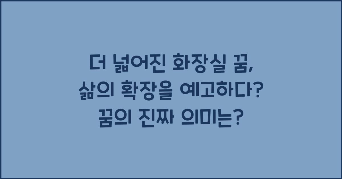 꿈은 우리의 무의식 세계에서 일어나는 신비로운 경험입니다. 특히, 더 넓어진 화장실 꿈: 삶의 확장을 예고하다 | 꿈해몽 꿈풀이 꿈해석 꿈의미는 많은 사람들에게 흥미로운 주제가 됩니다. 꿈의 상징과 의미는 개인의 삶에 큰 영향을 미칠 수 있는데, 화장실이라는 공간은 그 자체로 미묘한 의미를 지닙니다.