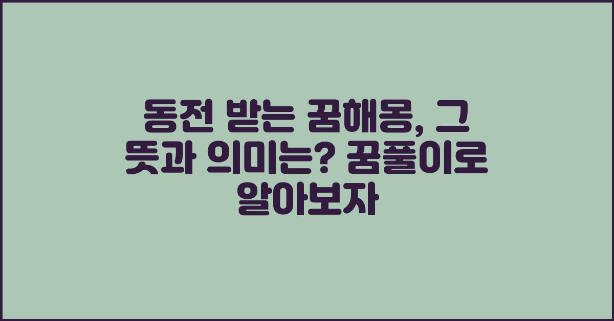 이제 동전 받는 꿈해몽에 대해 충분히 이해하셨나요? 여러분의 꿈이 소중한 메시지를 전해주고, 여러분의 삶에 긍정적인 변화를 가져오는 기회가 되길 바랍니다.