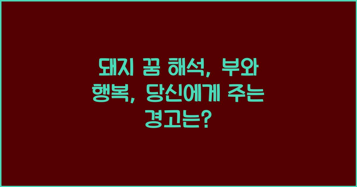🔑 돼지 꿈 해석: 돈, 행복, 그리고 경고 | 꿈해몽 꿈풀이 꿈해석 꿈의미