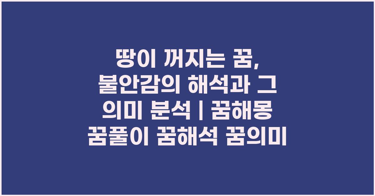 꿈은 우리의 내면을 비추는 창입니다. 때때로 우리는 꿈에서 땅이 꺼지는 모습을 보게 되는데, 이런 경험은 많은 불안감과 혼란을 초래합니다. 땅이 꺼지는 꿈은 불안정성과 불확실함을 상징합니다. 이는 우리가 현실에서 놓고 있는 것들이 무너질까 두렵다는 암시일 수 있습니다. 내 경험상, 이런 꿈을 꾸면 일상에서의 불안함을 잘 드러내는 것 같아요.