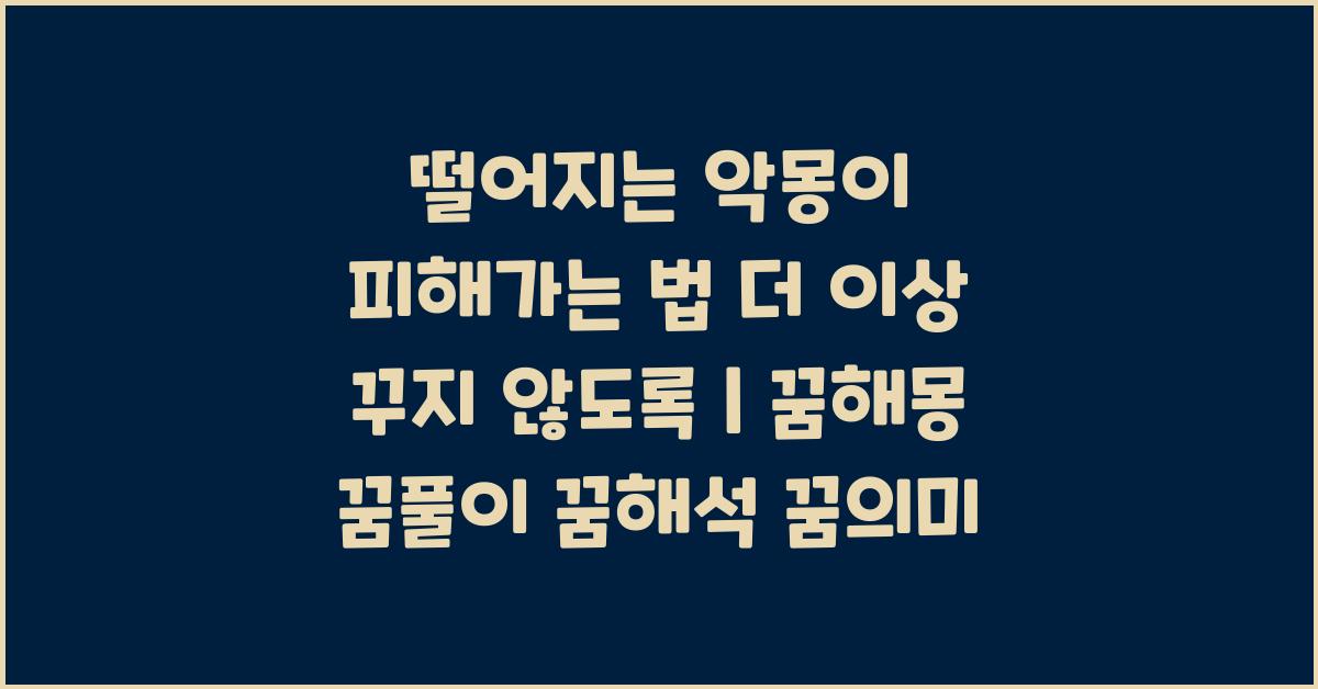 떨어지는 악몽이 더 이상 꾸이지 않도록 하기 위해서는 몇 가지 방법이 필요합니다. 첫 번째로, 심리적 안정을 찾는 것이 중요합니다. 정신적으로 불안한 상태에서는 그런 꿈이 계속 반복되기 마련이죠. 명상이나 요가 수업에 참여하는 것도 추천합니다. 내 마음의 소리에 귀 기울이며, 스스로를 다독이는 시간을 가져보세요.