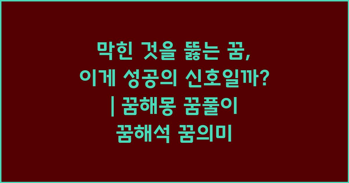 A3: 꿈 해몽은 상황에 따라 달라질 수 있으나, 막힌 것을 뚫는 꿈은 대개 긍정적인 시그널로 해석됩니다.