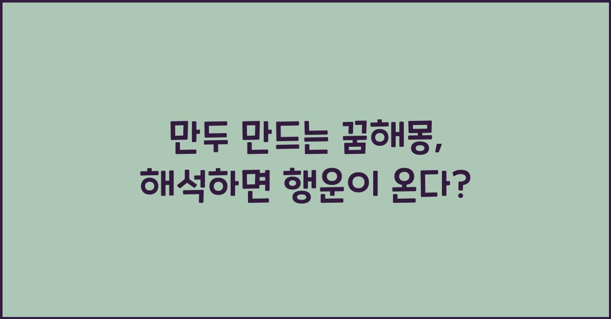 만두 만드는 꿈은 여러 해석이 가능합니다. 대개 꿈 속에서 직접 만두를 만드는 것은 자신이 어떤 목표를 스스로 만들어낼 능력이 있음을 시사합니다. 즉, 여러분의 능력과 가능성을 믿고, 다양한 상황에서 최선을 다할 때 좋은 결과가 따라온다는 뜻이 것이죠. 이렇게 해석하는 것은 매우 긍정적입니다.