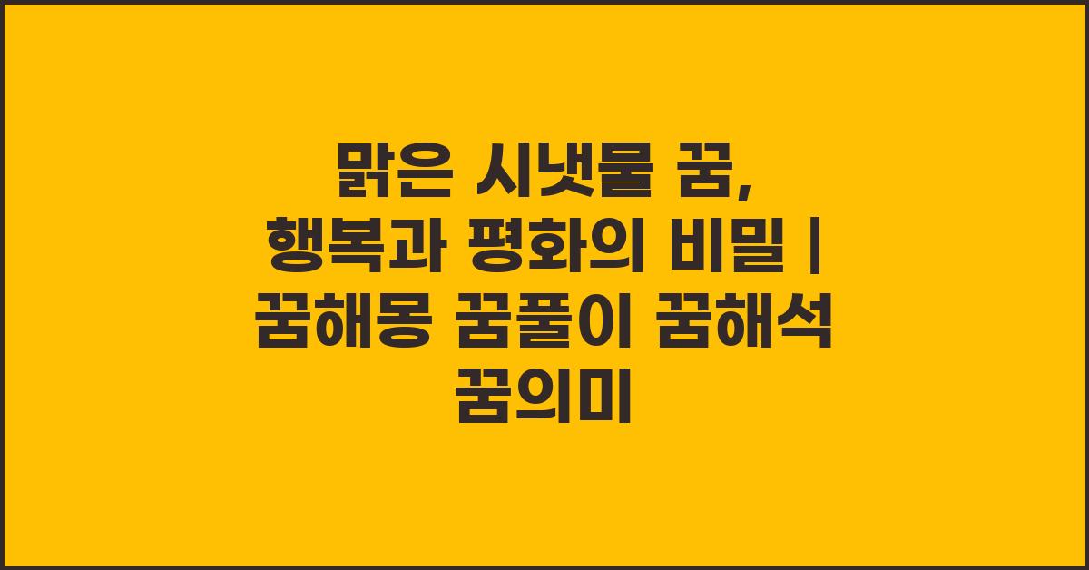 여러분, 꿈 속에서 맑은 시냇물을 경험하신 적 있나요? 흔들림 없이 흐르는 물소리는 우리에게 깊은 안식을 선사합니다. 이런 꿈은 단순한 환상이 아니라, 꿈해몽에서 중요한 의미를 지니고 있습니다. 맑은 시냇물 꿈, 행복과 평화의 상징 | 꿈해몽 꿈풀이 꿈해석 꿈의미라는 주제로 여러분과 이 신비로운 꿈의 비밀을 들여다보려고 합니다.