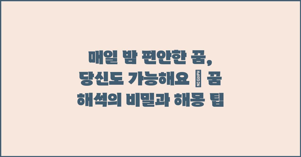 📌 매일 밤 편안한 꿈, 당신도 가능해요