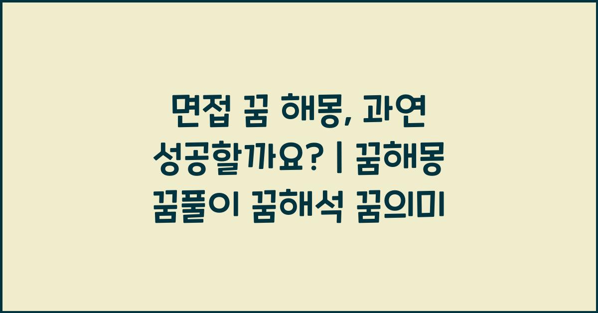 면접 꿈 해몽: 결과는 어떨까요? | 꿈해몽 꿈풀이 꿈해석 꿈의미에 대한 이 글을 통해 여러분이 꿈의 세계에서 발견할 수 있는 여러 가지 가능성을 탐험해보았기를 바랍니다. 꿈은 단순한 상상이 아닌 우리의 내면 깊은 곳을 들여다보는 도구임을 잊지 마세요.