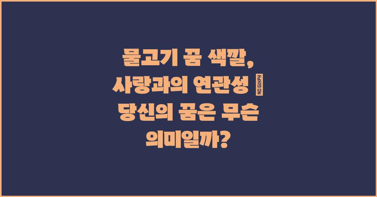 물고기 꿈 색깔, 사랑과의 연관성 | 꿈해몽 꿈풀이 꿈해석 꿈의미에서 가장 주목해야 할 점은 사랑을 연관 짓는 것입니다. 물고기 꿈은 상대방에 대한 감정이나 관계의 본질을 드러낼 수 있습니다. 이를테면, 상처받거나 힘든 시간을 보내고 있다면 어두운 색의 물고기가 나타날 수 있으며, 이는 사랑의 어려움을 나타내는 경고일 수 있습니다.