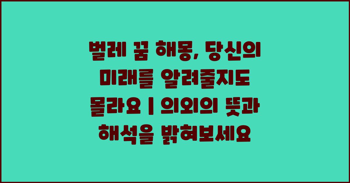 벌레 꿈 해몽: 당신의 미래를 알려줄지도 몰라요 | 꿈해몽 꿈풀이 꿈해석 꿈의미는 다소 혼란스러울 수 있지만, 이를 통해 자신의 감정과 무의식을 이해하는 데 큰 도움이 될 수 있습니다. 만약 벌레 꿈이 계속 나온다면, 그 꿈의 숨겨진 메시지를 찾기 위한 노력은 결코 헛되지 않을 것입니다.