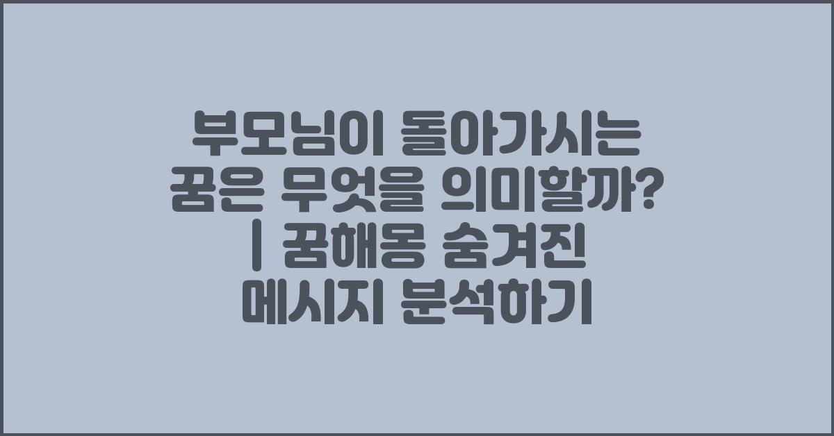 📌 꿈의 의미: 부모님이 돌아가시는 꿈은 무엇을 의미할까?