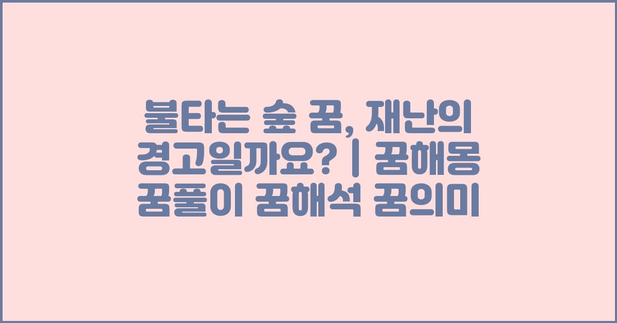 어두운 밤, 당신은 불타는 숲에 서 있습니다. 그 불길은 어찌된 일인지, 당신의 마음속 깊은 곳에서 차오르는 청각으로, 각종 소리들이 삼켜버리고 있습니다. 불타는 숲 꿈, 재난의 징조일까요? | 꿈해몽 꿈풀이 꿈해석 꿈의미에 대해 생각해보면, 이 꿈은 단순한 풍경이 아니라 우리에게 뭔가 전하려는 메시지가 있을지도 모른다는 생각이 듭니다.