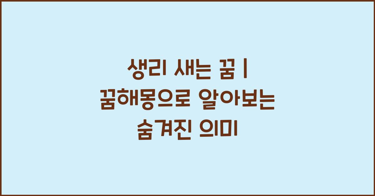 생리 새는 꿈은 단순한 꿈이 아닙니다. 이 꿈은 다양한 감정과 경험을 반영할 수 있는 깊은 의미를 품고 있습니다. 꿈의 해석을 통해 숨겨진 메시지를 알아보세요.