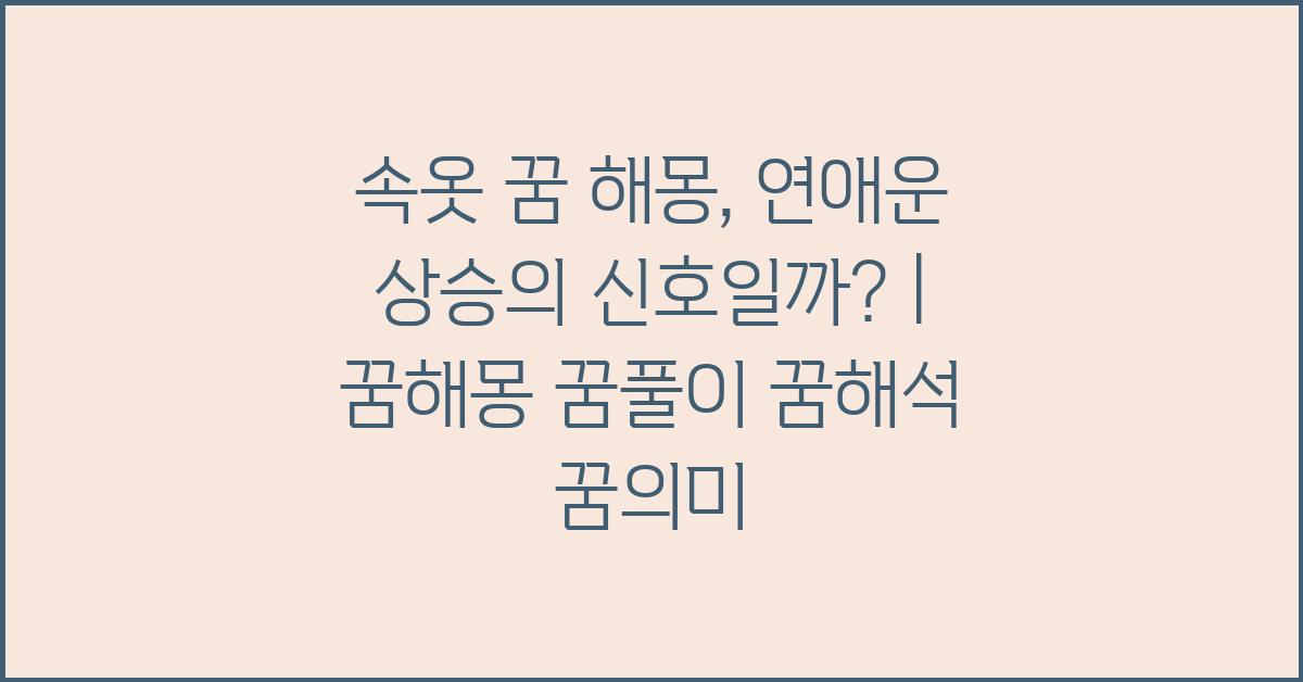 속옷 꿈 해몽: 사랑과 연애의 징조? 이 질문은 단순한 꿈 해석을 넘어, 개인의 감정과 상황을 반영하는 중요한 메시지를 내포합니다. 속옷이라는 상징을 통해 여러분의 내면의 마음을 들여다보는 계기가 되었으면 좋겠습니다.