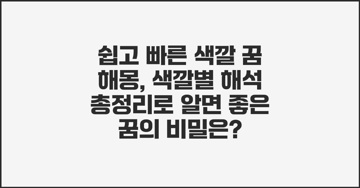 꿈은 우리에게 다양한 메시지를 전달하며 때로는 흥미롭고 혼란스러울 수 있습니다. 특히 색깔은 꿈에서 아주 중요한 역할을 하며 각 색깔이 가지고 있는 의미를 통해 우리의 심리상태와 미래를 엿볼 수 있습니다. 오늘은 쉽고 빠른 색깔 꿈 해몽: 색깔별 해석 총정리 | 꿈해몽 꿈풀이 꿈해석 꿈의미에 대해 자세히 알아보겠습니다.