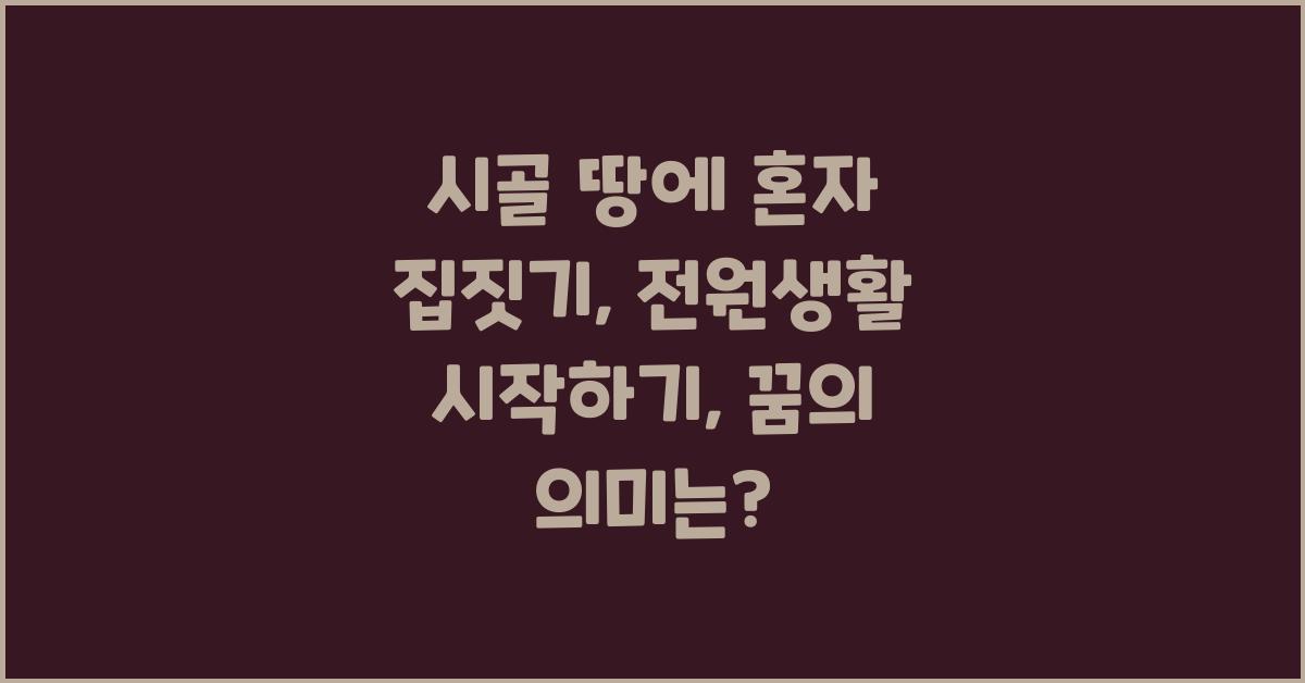 시골 땅에 혼자 집짓기, 전원생활 시작하기를 꿈꿨던 그날이 떠오릅니다. 많은 사람들이 라이프스타일의 변화를 원하지만, 현실적으로는 여러 가지 이유로 주저하게 됩니다. 내게도 그런 꿈이 있었습니다. 도시의 복잡한 생활을 접고, 자연 속에서의 평화롭고 여유로운 삶을 한 번 살아보고 싶었던 것이죠. 처음에는 막막하기만 했던 그런 꿈이 어떻게 시작되었는지, 그 과정에서 느낀 감정들을 여러분과 공유하고 싶습니다.