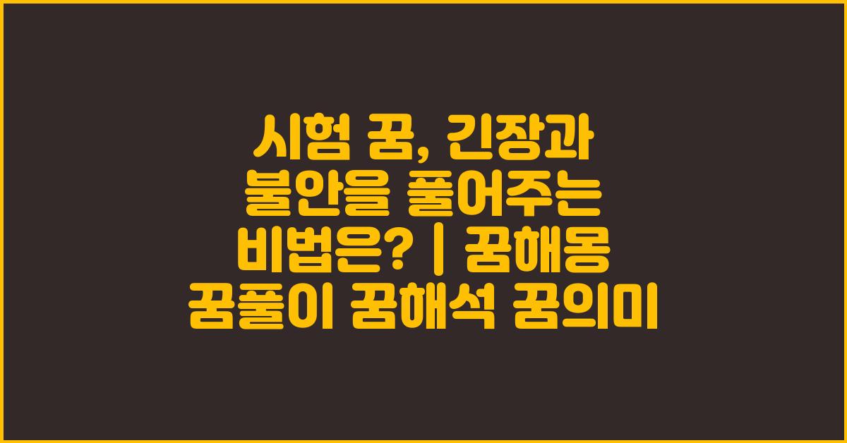 시험 꿈을 꾸는 것은 많은 이들이 겪는 경험입니다. 어떤 이는 대학 입시, 또 어떤 이는 직장 내 평가를 준비하는 가운데, 불안한 마음을 함께 꿈속에 뜨게 되곤 합니다. 이 꿈은 사실 우리 내면의 긴장과 불안을 표현하는 방식입니다. 그럴 때마다 '시험 꿈, 긴장과 불안을 극복하는 방법 | 꿈해몽 꿈풀이 꿈해석 꿈의미'를 찾아보는 것이 좋습니다!