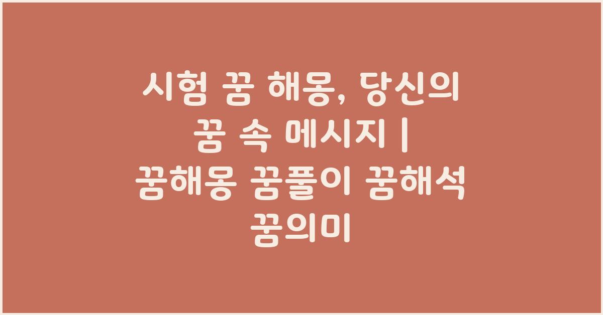 A2: 시험 꿈은 불안과 긴장을 반영하며, 현재의 삶에서 느끼는 스트레스와 관련이 깊습니다.