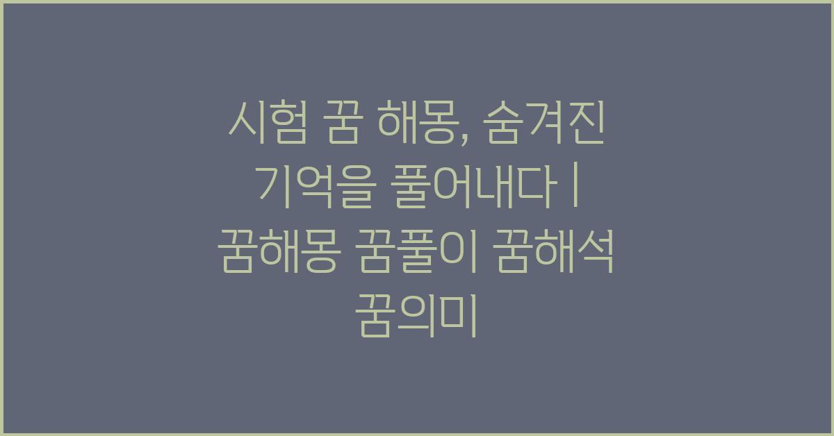 꿈 해몽은 단순히 꿈의 내용을 해석하는 것을 넘어, 우리의 내면에서 일어나는 여러 감정과 생각을 재조명하는 과정입니다. 그리고 시험 꿈 해몽: 잊혀진 기억의 재발견은 이러한 과정을 더욱 의미 있게 만들어 줍니다. 여러분도 그러한 꿈을 통해 더 나아가고 싶은 꿈을 이루어 가시길 바랍니다!